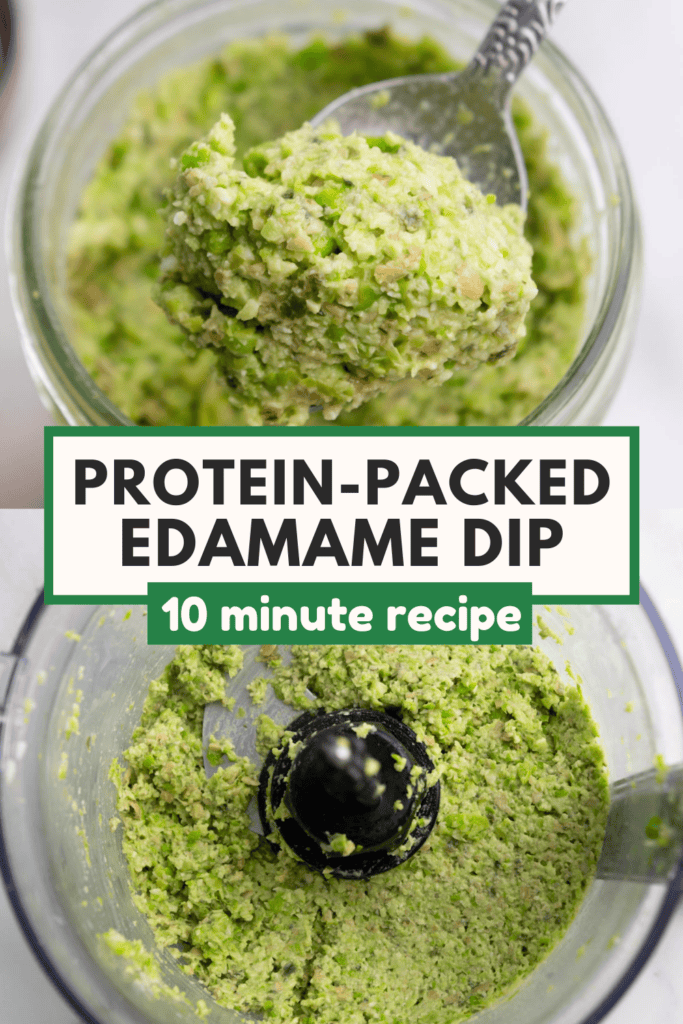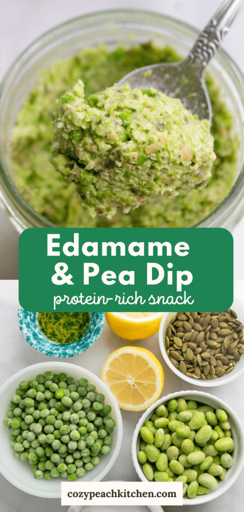 This 10 minute dip is made with frozen edamame, frozen peas, and lemon juice! It's an easy way to add protein and fiber to breakfast or snacks.