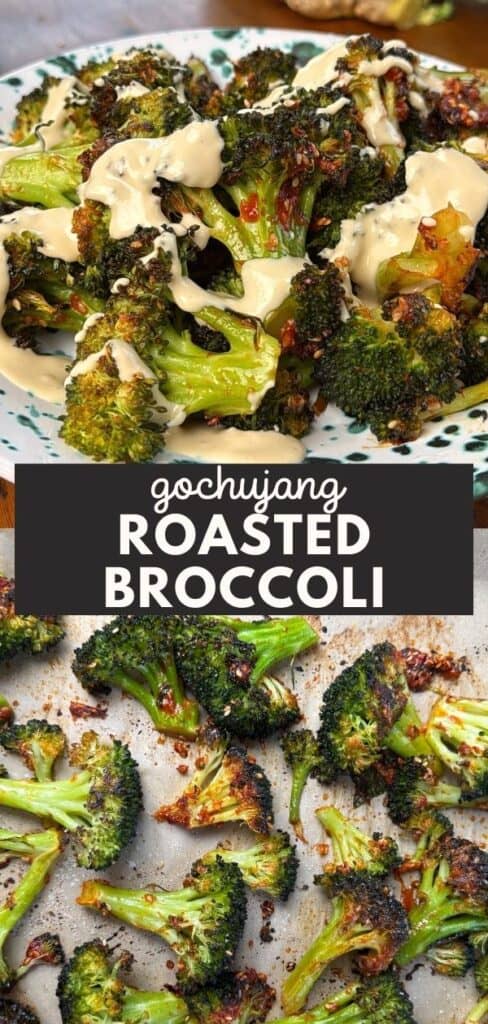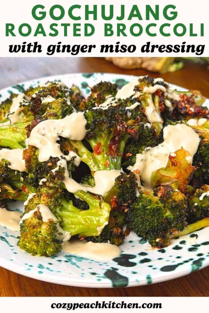 This Gochujang Roasted Broccoli is an easy way to make broccoli craveable! It takes just a few minutes of prep and the broccoli is drizzled with a tangy Ginger Miso Dressing.
